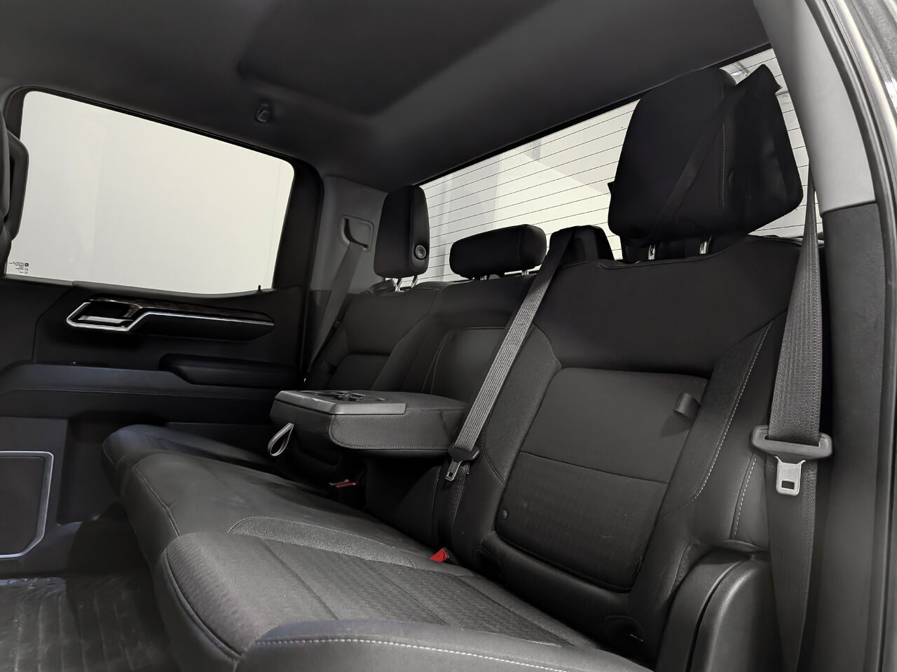 Groupe siège arrière en tissu avec rangement, banquette divisée 60/40 rabattable sur les modèles à cabine multiplace, comprend pochette de rangement aux dossiers des sièges gauche et droit, accoudoir central repliable avec 2 porte-gobelets, (comprend dispositif d'attaches supérieures pour siège d'enfant)