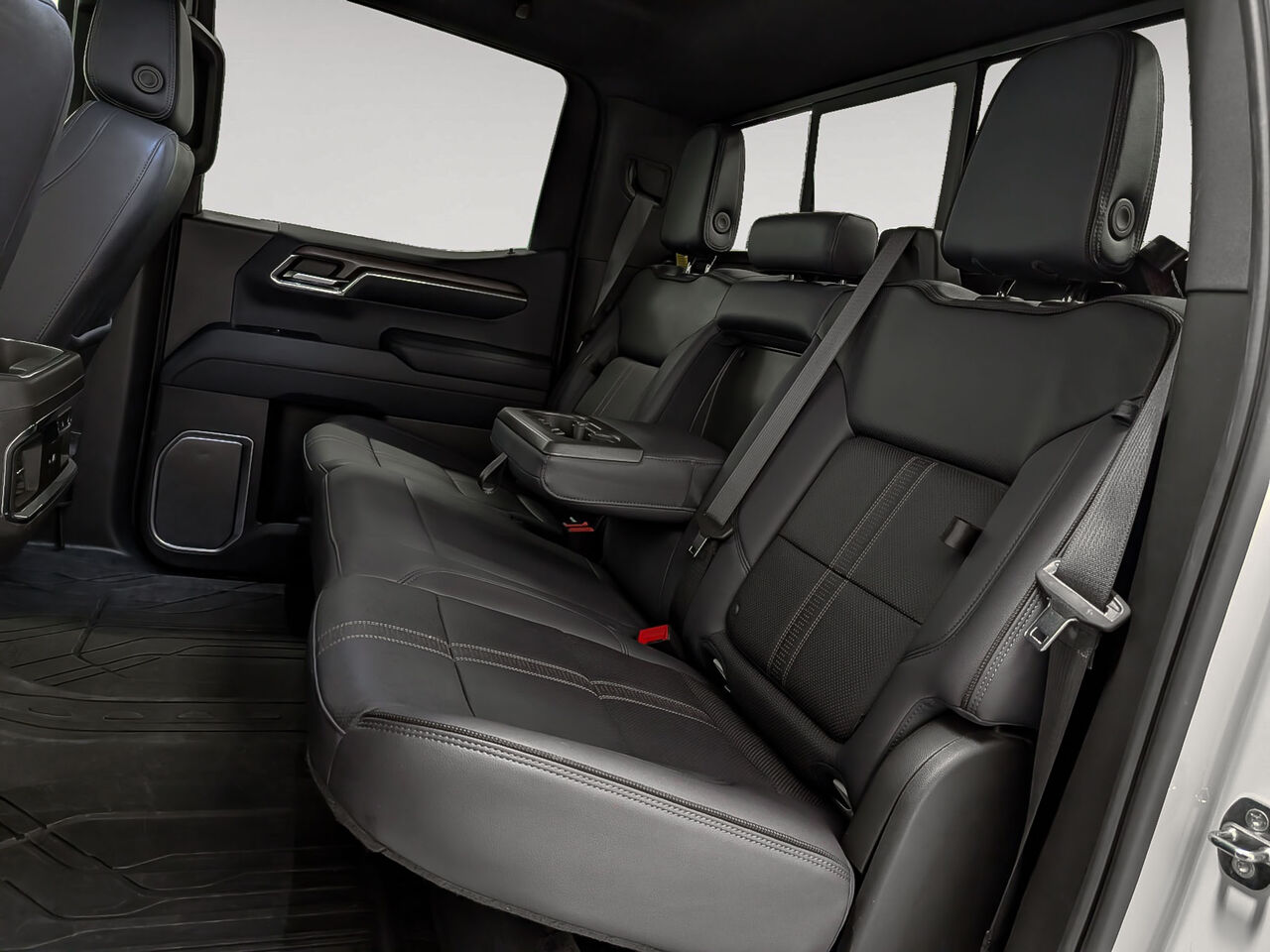 Groupe siège arrière haut de gamme avec rangement, banquette 60/40 rabattable pour les modèles à cabine multiplace, comprend banquette pleine longueur, pochette de rangement aux dossiers des sièges gauche et droit, accoudoir central repliable avec 2 porte-gobelets, compartiment de rangement sous le siège sur toute la largeur de la cabine (comprend dispositif d'attaches supérieures pour siège d'enfant) (Siège arrière avec surface en cuir.)