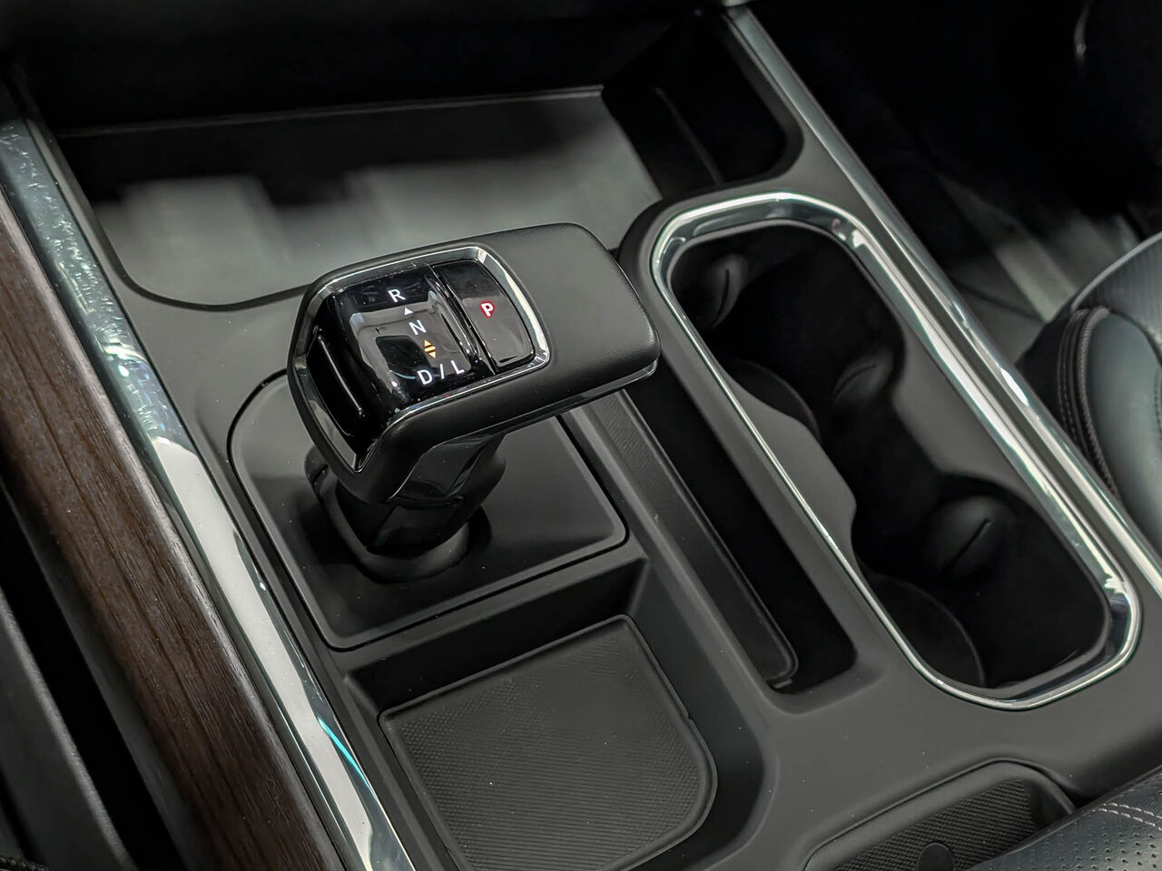 Console centrale au plancher avec porte-gobelets, recharge sans fil, gestion de cordon d'alimentation, capacité de rangement de dossiers suspendus; comprend plateau de rangement amovible (Comprend sélecteur de gamme de boîte de vitesses électronique (EPH) (monté sur la console).)